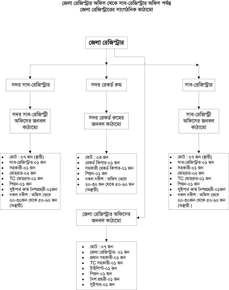 জেলা রেজিস্টার থেকে উপজেলা সাব রেজিস্টার পর্যন্ত অর্গানোগ্রাম